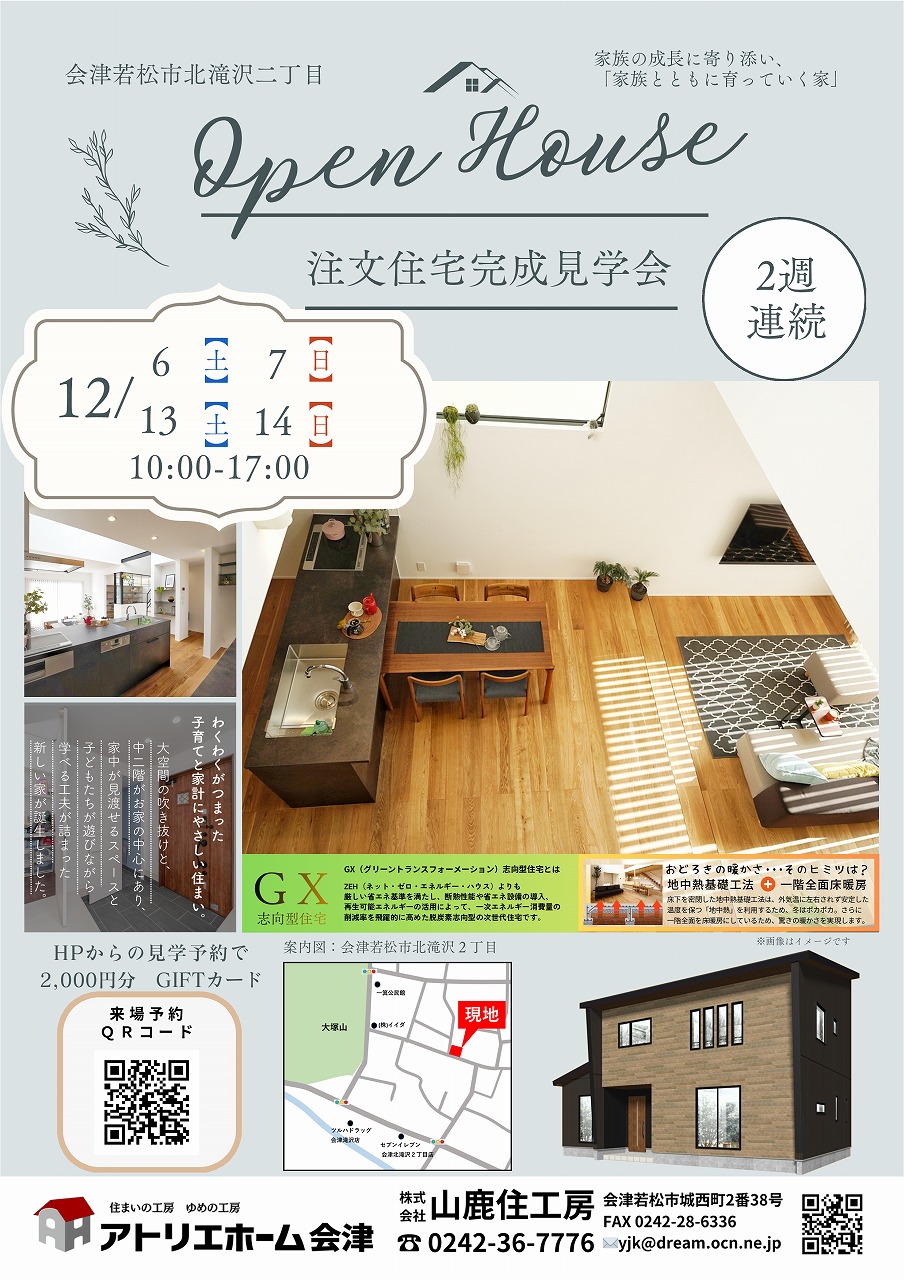 ご家族の理想とライフスタイルに合わせ、雪国である会津地域の気候風土に適した オーダーメイドの注文住宅を提供する地域密着型の工務店。 それがアトリエホーム会津です。 『住めば住むほど良い家だ』と思っていただける家を立てるために、 施主様とのコミュニケーションを大切に、予算と理想に合わせたプランをご提供いたします。