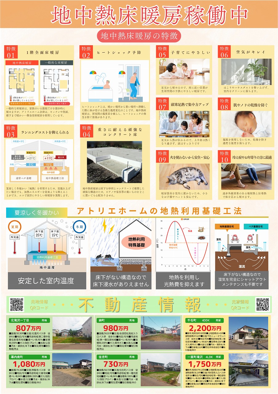来場予約特典 当社ホームページからの来場予約で ギフトカード2,000円分プレゼント🎁 完成見学会では当社の地熱床暖房も体験できます!!